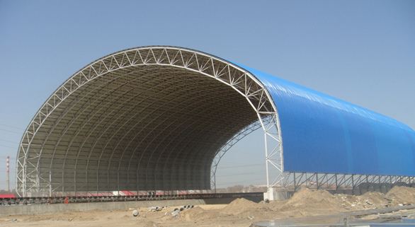 封閉式儲煤場有三種可選方案,全封閉儲煤棚網(wǎng)架結(jié)構(gòu)科學(xué)合理,20年來運行可靠,滿足對煤炭存放要求,得到所有業(yè)主及環(huán)保部門認可應(yīng)用;擋風(fēng)抑塵墻(網(wǎng))技術(shù)存在缺陷,環(huán)保驗收難以通過;混凝土筒倉或鋼板倉工程造價高過2-3倍,施工周期長,煤炭長時間集中堆放,易燃系數(shù)高,不具備實用操作性。網(wǎng)架圓形結(jié)構(gòu)式儲煤棚成為了最佳選擇。