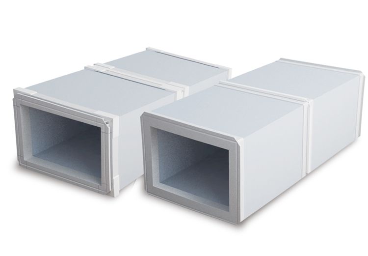 彩鋼風(fēng)管是用彩鋼復(fù)合莢芯板為板材制作加工而成的風(fēng)管。其中彩鋼復(fù)合莢芯板是以保溫材料為芯材,其中一面是復(fù)合抑菌涂層的鋁箔,另一面是復(fù)合各種色彩的彩鋼板而制成的復(fù)合夾芯板。保溫材料通常有聚氨酯、巖棉、玻璃絲棉等材質(zhì)。