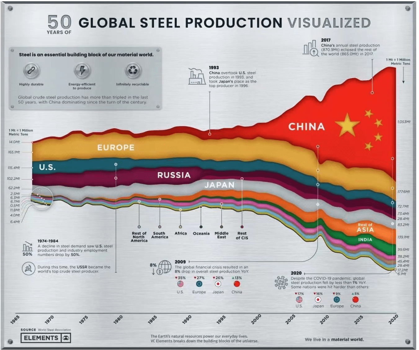 Specifically, in 2024-2025, affected by local infrastructure investment, India’s steel demand will continue to grow by 8%, and steel demand in 2025 is expected to be nearly 70 million tons more than in 2020.